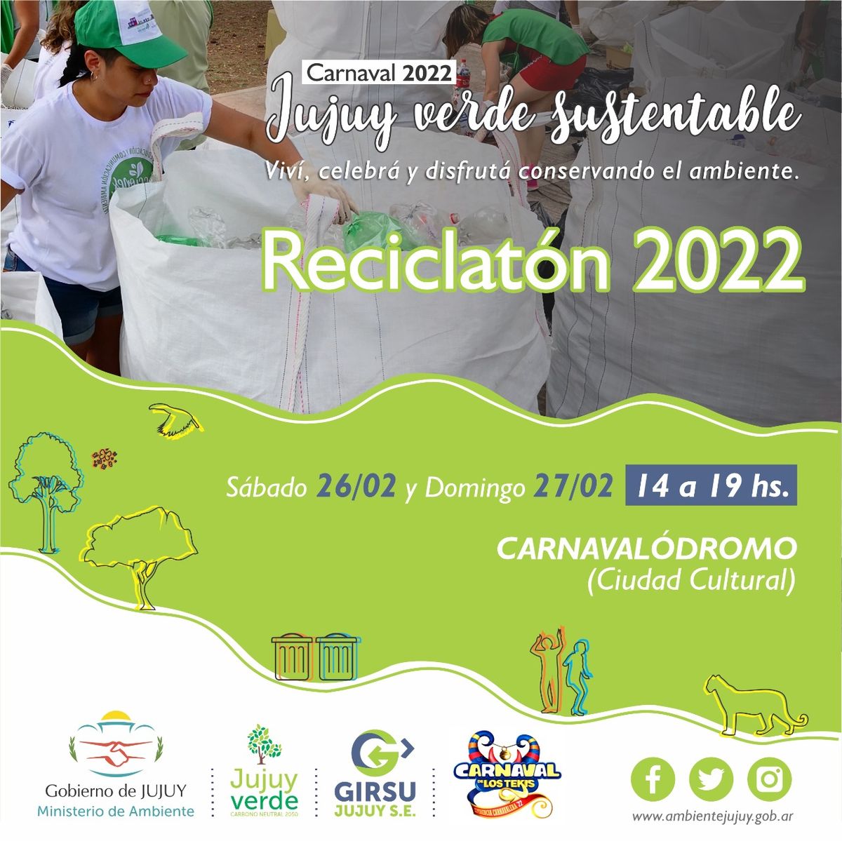 Esta edición especial del Reciclatón se concretará los días sábado 26 y domingo 27 de febrero, de 15 a 19 hs., en el marco del Carnavalódromo organizado por los Tekis en la Ciudad Cultural. En la oportunidad se canjearán 20 unidades de aluminio o botellas, y una cantidad mínima considerable de papel y cartón (5 kg al menos).