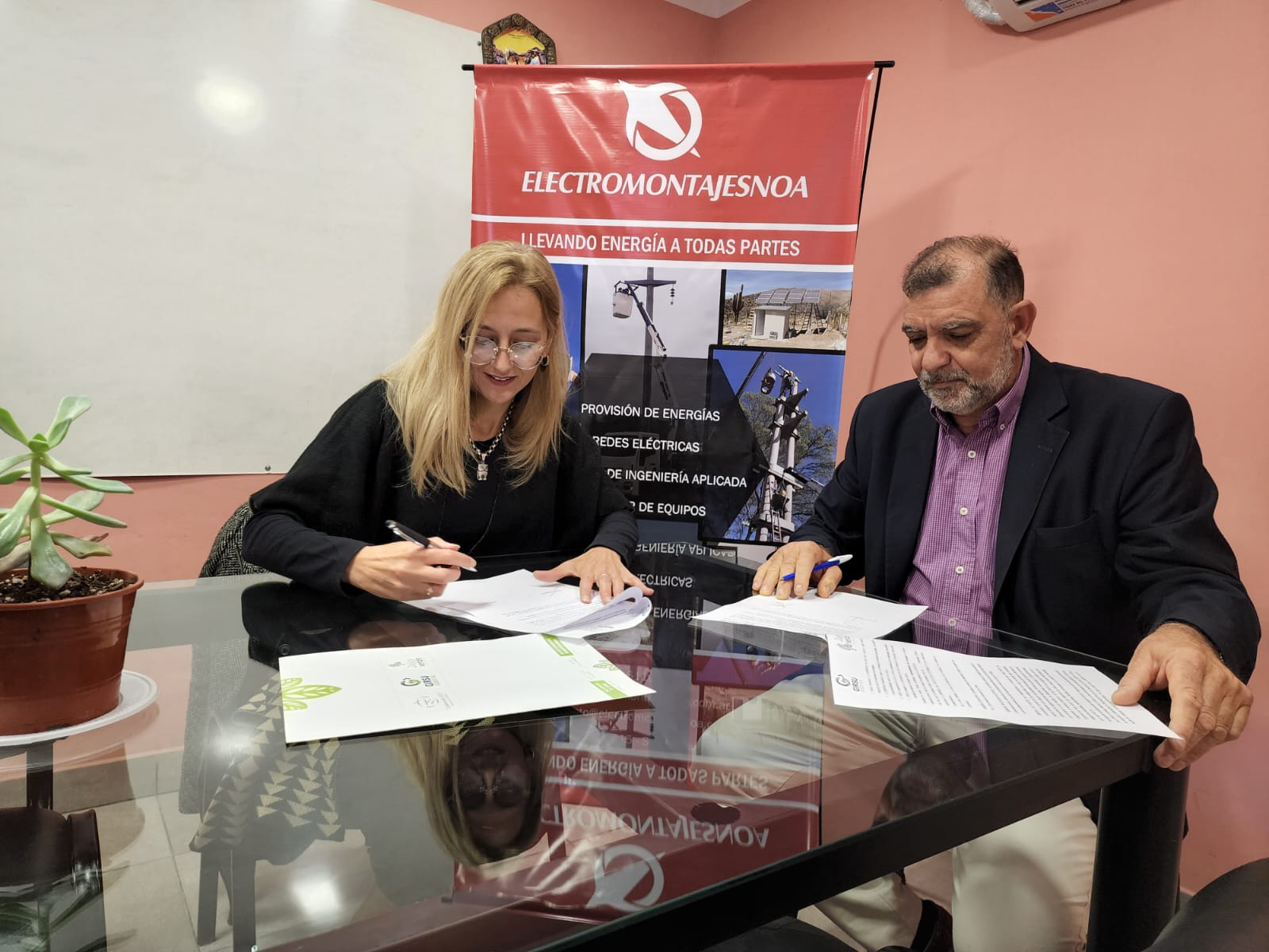 En instalaciones de la empresa Electromontajes NOA se llevo a cabo la rúbrica de un importante convenio de colaboración de recepción de residuos reciclables entre el Socio-Gerente la empresa Ing. Pablo Banha y la Pte. de Girsu S.E Dra. Gabriela Albornoz con el fin de generar un efecto de concientización respecto de la lucha contra el cambio climático y el cuidado de nuestro ambiente otorgando a la pyme jujeña el reconocimiento como una institución sostenible con las menciones correspondientes desde el Gobierno provincial.