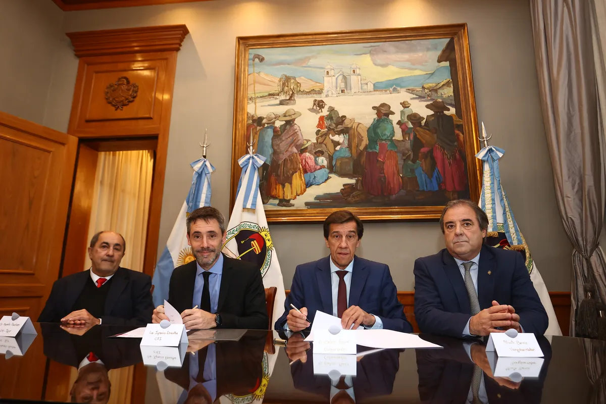 La rúbrica se concretó en el Salón Fascio de Casa de Gobierno, con el acompañamiento del vicegobernador, Alberto Bernis, y el titular del CFI en la provincia, Marcelo Abraham, además de los integrantes del equipo técnico del organismo que arribó a Jujuy.