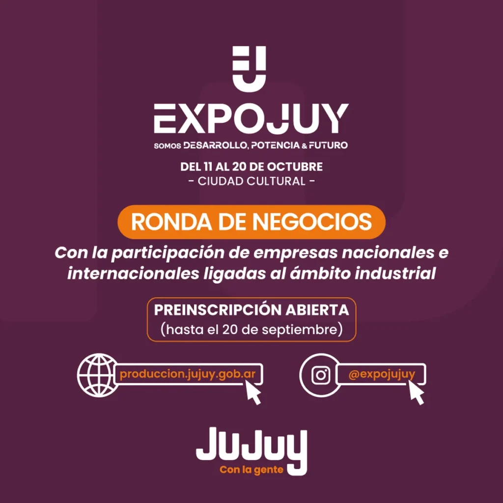 Los interesados en participar pueden preinscribirse hasta el 20 de septiembre en produccion.jujuy.gob.ar El Ministerio de Desarrollo Económico y Producción invita a emprendedores de la provincia de Jujuy a sumarse a la ronda de negocios que se dará en el marco de la Expojuy 2024. La convocatoria es realizada por la Cámara de Comercio Exterior de Jujuy junto […]